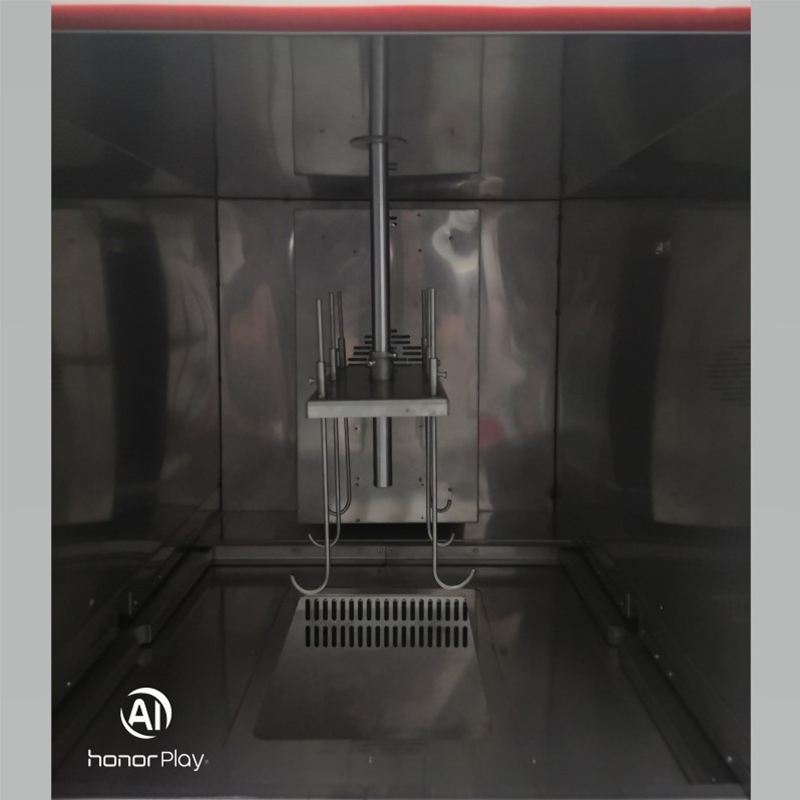 2.2. Na striedavé testovanie vzoriek medzi hornou a dolnou komorou elektrická tlačná tyč namontovaná na vrchu sušiacej pece zdvíha a spúšťa vzorky. Stojan na vzorky vyrobený z nehrdzavejúcej ocele 316L pojme šesť vzoriek. Elektricky ovládané prepážkové dvierka medzi sušiarňou a komorou na ponorenie soli sa automaticky otvárajú a zatvárajú podľa experimentálnej sekvencie s ďalšími tlačidlami na ručné ovládanie pre dočasnú prevádzku.